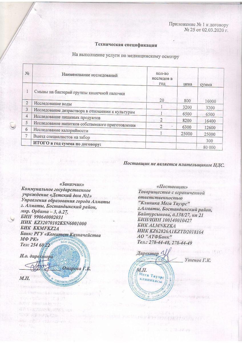 » Договор №25 ТОО "Клиника Мега Тауэрс"