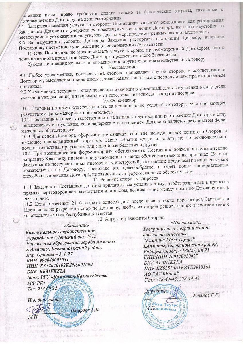 Договор ТОО Клиника Мега Тау